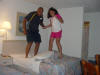 Dad says it is a tradition in his family to jump on the bed when we stay at a hotel.... I don't get to do this at home so it is lots of fun! |
